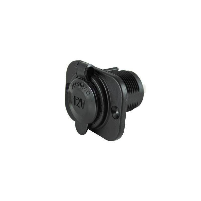 Toma de mechero 12V de montaje en superficie para paneles antisalpicaduras. Color negro.